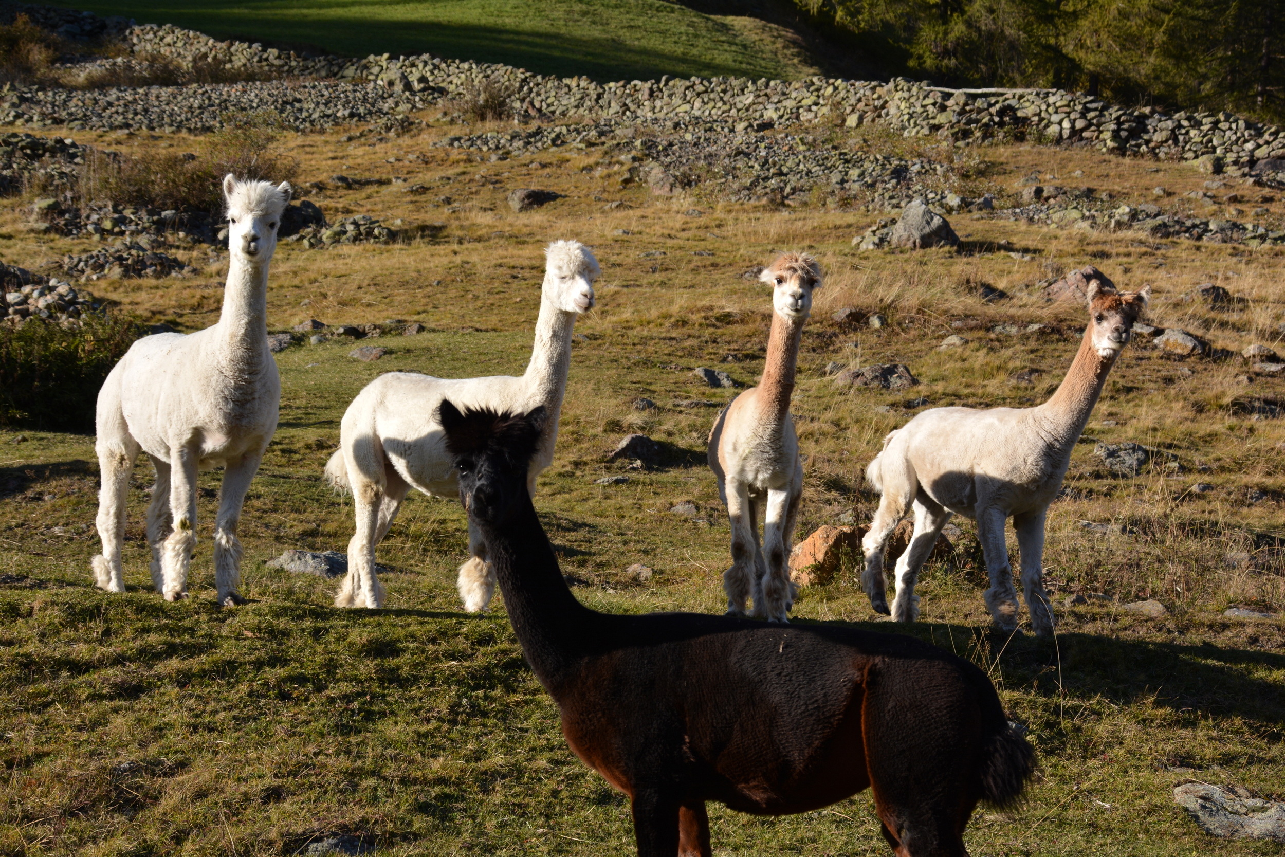 Al nostro maso abitano mucche, galline e alpaca.